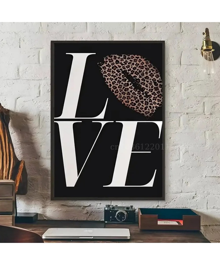 Affiche d'art mural léopard et rose pour femmes et léopard, autocollant en papier imperméable, pour café, Bar, mur de salle