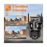 Wonsdar Caméra IP extérieure Wifi 6K HD trois objectifs 4K
