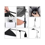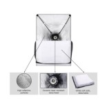 Softbox 50x70 cm : Tissu pliable blanc avec intérieur argenté réfléchissant pour minimiser la perte de lumière et maximiser sa diffusion. Fabriqué en fibre de polyester non toxique avec 4 bielles flexibles pour une installation rapide.