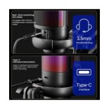 Effet d'éclairage RVB : le microphone avec éclairage RVB dégradé à changement automatique rend votre diffusion en temps réel plus accrocheuse.L'éclairage dégradé du microphone vous apporte le sentiment ultime du jeu, créant l'atmosphère de carnaval idéale.